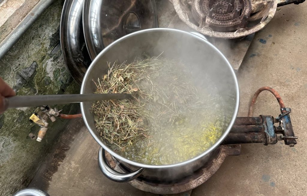 草木工房の布染基礎クラスでは、絹ストールの染色に加えて、絹布の試験染を通して草木染の布染を半日で実践的に学びます。講習会は絹ストール・試験布の準備から始まり、前処理、染料抽出、講義、絹ストールと試験布の染色、仕上げという流れで行います。試験染は無媒染、アルミ媒染、鉄媒染の3種類を行います。