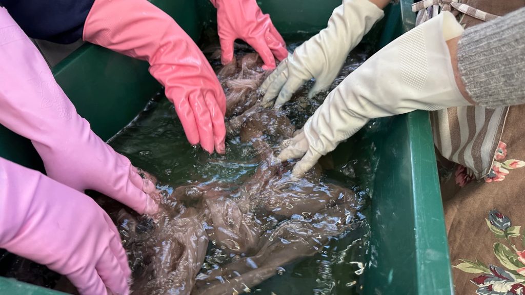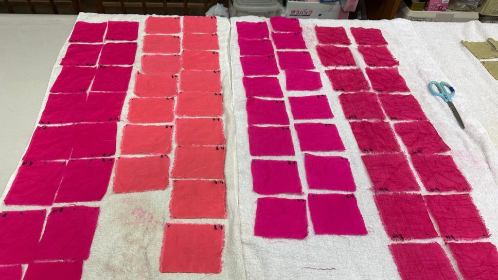 また、染色作業終了後に残った染料や染料液は持ち帰り、ご自宅でも染めることができます。再現を行うこともでき、実践を通じて学びを定着させることができる講習内容となっています。